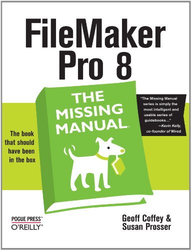 Used by millions worldwide, FileMaker Pro is an award-winning database program for managing people, projects, images, assets, and other information. Free download FileMaker Pro 8 books collection in PDF, EPUB, FB2, MOBI, and TXT formats. It's easy to use and totally customizable--so long as you know what you're doing. But FileMaker Pro doesn't come with a printed manual, so FileMaker Pro: The Missing Manual is the authoritative, jargon-free book that should have been in the box. FileMaker Pro: The Missing Manual approaches FileMaker the way FileMaker approaches you: it's user-friendly and seemingly straightforward enough, but it offers plenty of substance worthy of deeper exploration. Packed with practical information as well as countless expert tips and invaluable guidance, it's an in-depth guide to designing and building useful databases with the powerful and pliable FileMaker Pro. Best deals ebooks download FileMaker Pro 8 on amazon.Covering FileMaker for both Windows and Macintosh, FileMaker Pro: The Missing Manual is ideal for small business users, home users, school teachers, developers--anyone who wants to organize information efficiently and effectively. Whether you want to run a business, publish a shopping cart on the Web, plan a wedding, manage a student information system at your school, or program databases for clients, this book delivers. Author Geoff Coffey has many years of experience using FileMaker Pro (he was, in fact, an early beta tester for the product). Author Susan Prosser is a FileMaker Certified Developer who trains other developers. Together, Coffey and Prosser show you how to:Get FileMaker up and running quickly and smoothly Import and organize information with ease Design relational databases that are simple to use, yet powerful Take advantage of FileMaker Pro calculation capabilities Automate processes with scripting Customize FileMaker Pro to your needs and preferences Share information with other people (coworkers, clients, and customers) and other programs Understand and select the best security options What could easily come across as dry and intimidating--things like relational theory, calculations, and scripting--are presented in a way that is interesting and intuitive to mainstream users. In no time, you'll be working more productively and efficiently using FileMaker Pro. Download FileMaker Pro 8: The Missing Manual with free ebook downloads available via rapidshare, mediafire, 4shared.