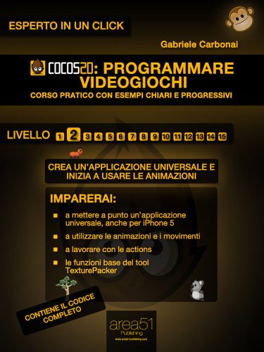 "Cocos2d: programmare videogiochi" di Gabriele Carbonai ti permetterà di diventare autonomo nella programmazione di videogiochi per device Apple. I puntuali approfondimenti teorici ti permetteranno di avvicinarti alla creazione di videogiochi pur non avendo nessuna esperienza di programmazione. Come utente esperto potrai invece scoprire e metter in pratica tutte le possibilità offerte da cocos2d. Il corso si compone di ebook progressivi in cui metterai costantemente in pratica le nozioni apprese. In ogni volume arriverai a creare una o più applicazioni complete e perfettamente funzionanti, sino a curarne la commercializzazione tramite App Store.