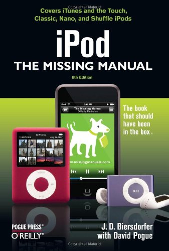 iPod is simply the best music player available, and this is the manual that should have come with it. With iPod touch, Apple's sleek little entertainment center has entered a whole new realm, and the ultimate iPod book is ready to take you on a complete guided tour. As breathtaking and satisfying as its subject, iPod: The Missing Manual gives you a no-nonsense view of everything in the "sixth generation" iPod line. Learn what you can do with iPod Touch and its multi-touch interface, 3.5-inch widescreen display and Wi-Fi browsing capabilities. Get to know the redesigned iPod Nano with its larger display and video storage capacity. It's all right here. The 6th edition sports easy-to-follow color graphics, crystal-clear explanations, and guidance on the most useful things your iPod can do. Topics include: Out of the box and into your ears. Learn how to install iTunes, load music on your iPod, and get rid of that dang flashing "Do not disconnect" message. Bopping around the iPod. Whether you've got a tiny Shuffle, a Nano, the Classic, or the new Touch, you'll learn everything from turning your iPod off and on to charging your iPod without a computer. Special coverage for iPod owners with trickster friends: How to reset the iPod's menus to English if they've been changed to, say, Korean. In tune with iTunes. iTunes can do far more than your father's jukebox. Learn how to pick and choose which parts of your iTunes library loads onto your iPod, how to move your sacred iTunes Folder to a bigger hard drive, and how to add album covers to your growing collection. The power of the 'Pod. Download movies and TV shows, play photo slideshows, find cool podcasts, and more: this book shows you how to unleash all your iPod's power. iPod is simply the best music player available, and this is the manual that should have come with it.