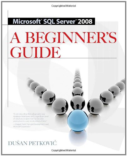 Get Started on Microsoft SQL Server 2008 in No TimeLearn to use all of the powerful features available in SQL Server 2008 quickly and easily. Free download Microsoft SQL Server 2008 books collection in PDF, EPUB, FB2, MOBI, and TXT formats. M Best deals ebooks download Microsoft SQL Server 2008 on amazon.crosoft SQL Server 2008: A Beginner's Guide explains the fundamentals of each topic alongside examples and tutorials that walk you through real-world database tasks. Install SQL Server 2008, construct high-performance databases, use powerful Transact-SQL statements, create stored procedures and triggers, and execute simple and complex database queries. Performance tuning, Database Engine security, Business Intelligence, and XML are also covered. Set up, configure, and maintain SQL Server 2008Build and manage database objects using Transact-SQL statements Create stored procedures and user-defined functionsOptimize database performance, availability, and reliabilityImplement solid security using authentication, encryption, and authorization Automate tasks using SQL Server AgentCreate reliable data backups and perform flawless system restoresUse all-new SQL Server 2008 Business Intelligence, development, and administration toolsLearn in detail the SQL Server XML technology (SQLXML) Download Microsoft SQL Server 2008: A Beginner's Guide with free ebook downloads available via rapidshare, mediafire, 4shared.