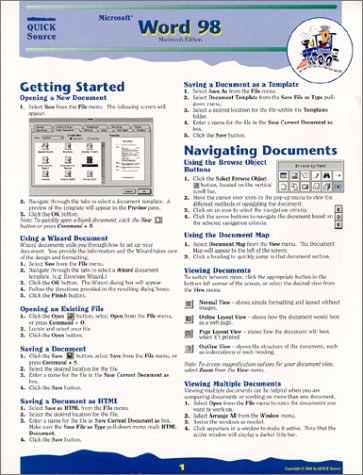 Microsoft Word 98 Quick Source Guide for Macintosh